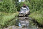В этот раз к сложностям в виде глубоких колей, по которым машина меньше УРАЛа до нас не ездила, добавились разбросанные кругом камни. После двух сильных ударов в корпус редуктора переднего моста и двух соответствующих вмятин я серьезно задумался над изготовлением защиты для него… Кстати, до сих пор не могу понять, как в лесу, в котором каждый год опадает множество листвы, камни оказываются лежащими на поверхности земли?