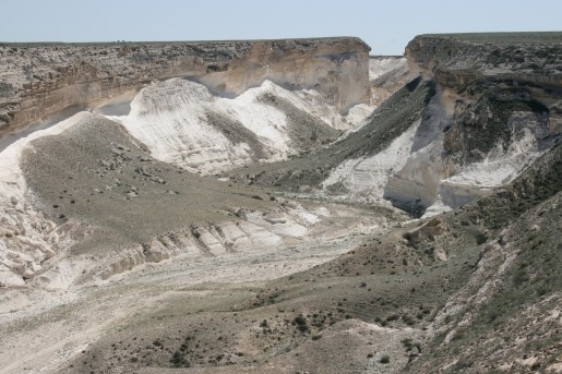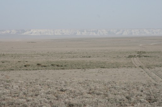 По мере приближения к плато оно превращалось из белой полоски на горизонте в будоражащие сознание скалы. В этом особенность Западного Казахстана — изменения рельефа здесь возникают очень резко и ниоткуда. Бескрайняя степь через пол часа может превратиться в огромный провал в земле или бесконечную гряду скал до горизонта.